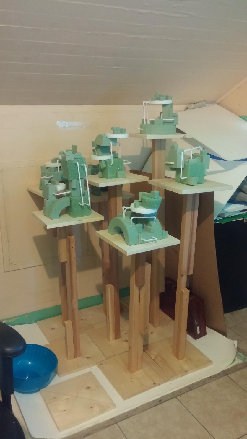 So I turned my room into a studio. I made the base for my seven piece sculpture set using foam blocks and cedar.